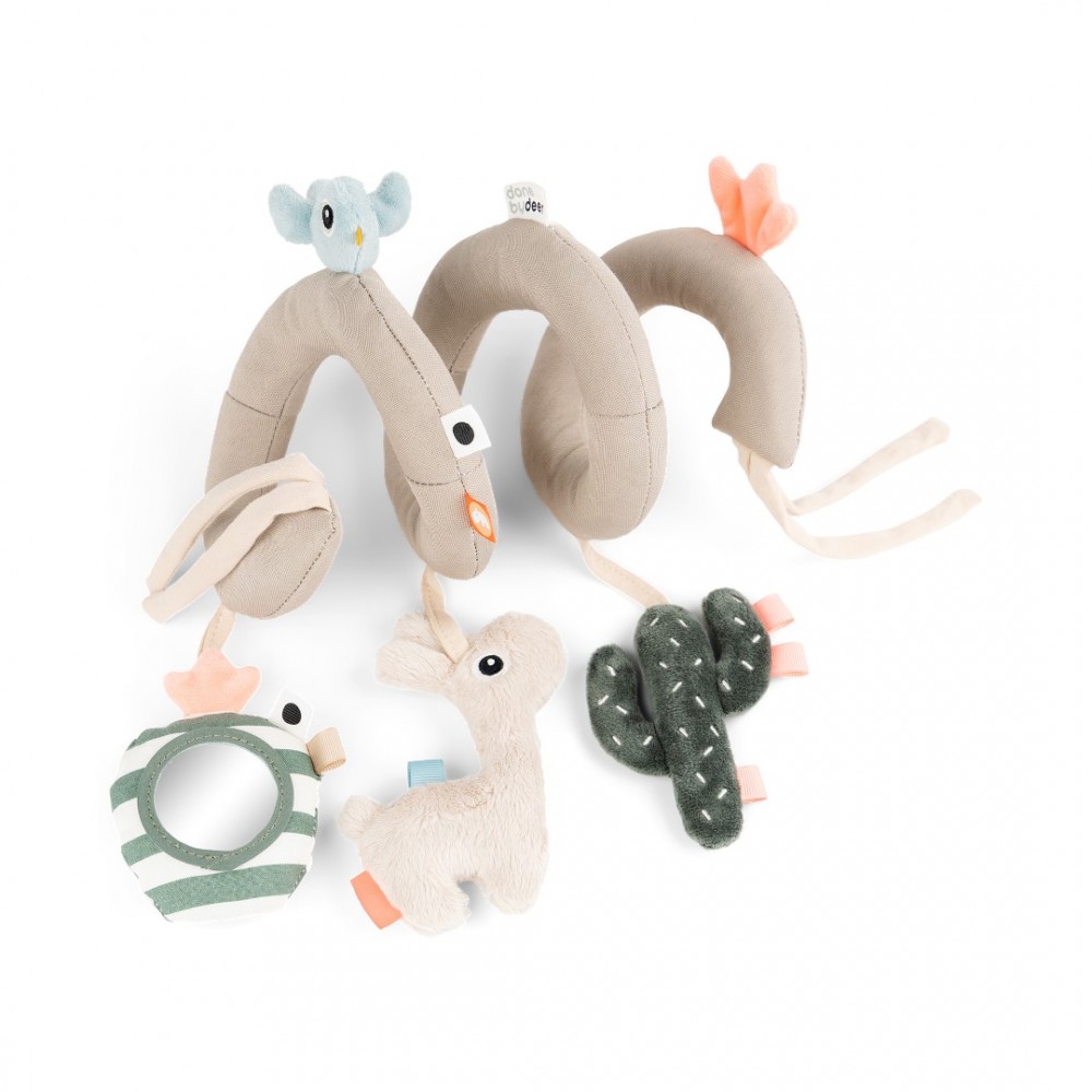 Različite teksture, šuštavi dijelovi i viseći privjesci potiču senzornu stimulaciju, razvoj motorike i koordinacije ruku i očiju. Aktivna spirala idealna je za poticanje znatiželje i istraživanja već od najranije dobi.