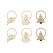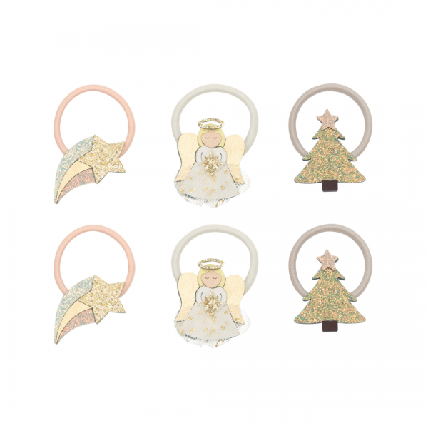 U pakiranju se nalazi šest mini gumica (promjera 3 cm), izrađenih od čvrstog i rastezljivog materijala koji nježno drži kosu na mjestu. Svaka gumica ukrašena je čarobnim motivima – anđelima, božićnim drvcima i zvijezdama padalicama izrađenima od kombinacije šljokičastog, metaliziranog materijala, dok su suknjice anđela od mekanog tila posutog šljokicama za dodatni blagdanski sjaj.