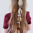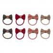 Set sadrži osam gumica s mini baršunastim mašnicama u bogatim, sezonskim bojama. Svaka mašnica izrađena je od mekanog baršuna s centralnim sjajnim detaljem, a gumice su čvrste, rastezljive i duljine 5 cm u usklađenim bojama, idealne za sve vrste frizura.