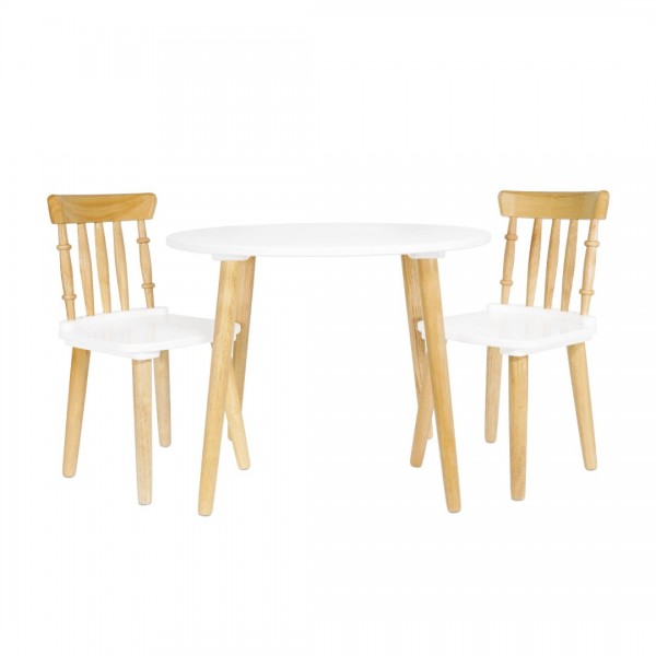 Ovaj šarmantni drveni set – stol i dvije stolice – predstavlja savršeno mjesto za dječju igru, crtanje, čitanje, jelo ili druženje s prijateljima. Zahvaljujući stabilnoj i održivoj konstrukciji od drveta, idealan je za svakodnevne aktivnosti i razne kreativne aktivnosti djece. Max opterećenje: 50kg