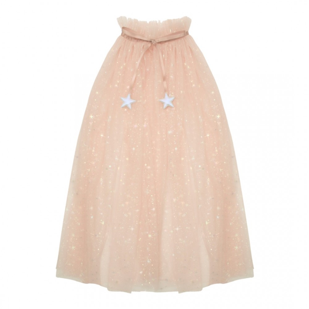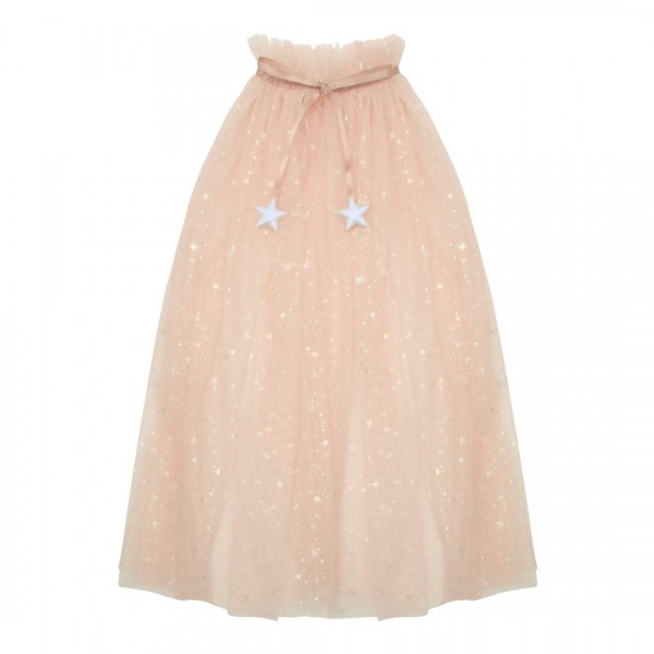 Lagani i pahuljasti, izrađen od slojeva nježnog ružičastog tila posutog sjajnim metalik zvjezdicama, ovaj plašt unosi dašak bajke u svaki trenutak igre. Savršen je za maštovite avanture, rođendanske proslave ili maskenbale, a uz njega se lako kombinira i princezin šeširić ili suknja za potpuni izgled.