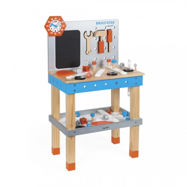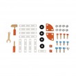 Jedinstveni sustav koji ovaj drveni stol s alatima ima omogućuje podešavanje visine njegovog postolja, tako da stol raste uz vaše dijete i prilagođava se njegovoj visini (maksimalna visina radne površine radnog stola je 50,7 cm). Pametni sustav magnetiziranih alata vašem djetetu olakšava spremanje alata na pravo mjesto. Zbog tako velikog broja dodataka koji su uključeni u ovaj set mali majstori mogu slobodno pustiti mašti na volju i smišljati raznorazne izume koje će sastaviti i rastaviti. Uz stol, u setu dolaze 3 magnetizirana alata i 40 dodataka priboru (vijci, matice, diskovi, jastučići ...), sat, ploča s kredom za pisanje te upute za sastavljanje trkaćeg automobila.