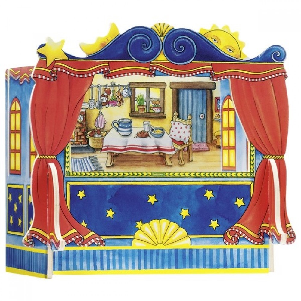 • Postavite nevjerojatne predstave u vlastitom stolnom kazalištu. Kroz otvoreni pod pozornice, lutke i figure stupaju na daske koje znače svijet. Može se umetnuti pet različitih kulisa za uvijek nove i maštovite kazališne produkcije.