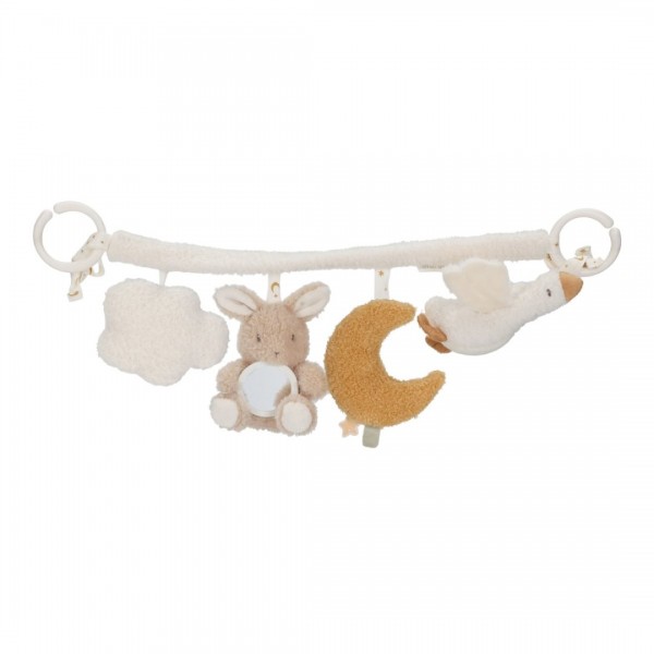 Razigrani suputnik u pokretu. Lanac s igračkama Newborn Naturals za kolica svaku će vožnju učiniti zabavnijom, zahvaljujući mekanim figuricama i suptilnom zveketu. Jednostavno se pričvršćuje na kolica, pružajući vašem mališanu stalnu priliku za gledanje i istraživanje. Izrađen od mekih materijala u umirujućim tonovima – savršen za male ručice. Slatki pratitelj za radosne izlaske!