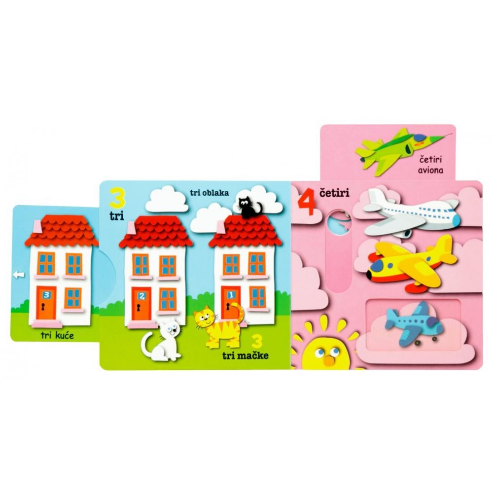 Interaktivna slikovnica s pomičnim dijelovima idealna je za prvo učenje brojeva i pojmova.
