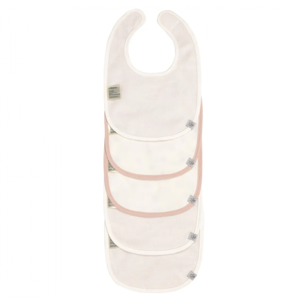 Podbradnjaci su izrađeni s visokim udjelom organskog pamuka, što ih čini mekanima i sigurnima za osjetljivu dječju kožu. Zahvaljujući vodootpornom sloju s unutarnje strane, učinkovito štite odjeću od mrlja i vlage, dok praktično čičak zatvaranje omogućuje brzo i jednostavno korištenje.