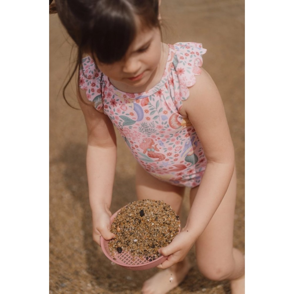 Dječji jednodijelni kupaći kostim Dreamy Mermaid brenda Little Dutch savršen je za male ljubiteljice morskih avantura. Nježan rozi dizajn s čarobnim motivima sirena, ribica i morskih zvijezda stvara bajkovit izgled koji će svako kupanje učiniti posebnim.