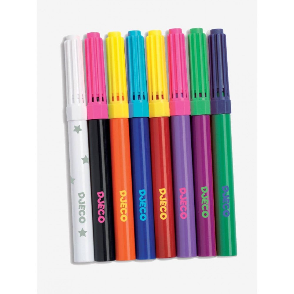 Ovaj veseli set sadrži ukupno 9 flomastera u žarkim bojama koji nisu ono što se čini na prvu. Uzmete li bijeli, čarobni flomaster u ruku i prijeđete li preko ostalih boja, one će se izmijeniti! Na iznenađenje vaših mališana zelena će postati ljubičasta, narančasta će odjednom biti roza, a crvena će se pretvoriti u žutu.