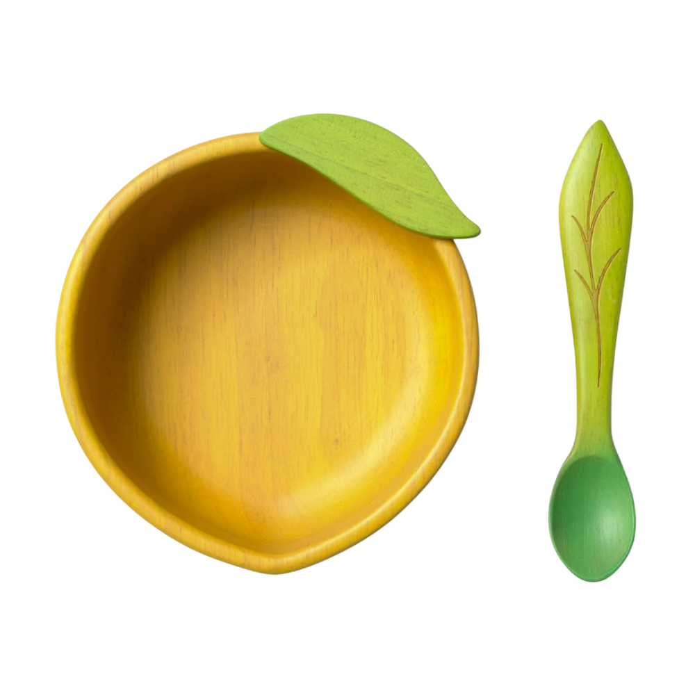 Oli & Carol set — zdjelica i žličica Limun John dizajniran je da svaki obrok vaše bebe učini sigurnim, zabavnim i održivim. Set uključuje zdjelicu i žličicu ručno izrađene od prirodnog Hevea drveta, bez plastike, ftalata i drugih štetnih tvari — idealno za bebe koje tek počinju s krutom hranom.