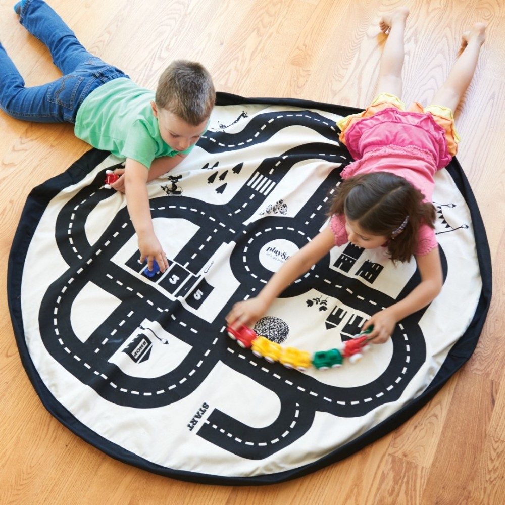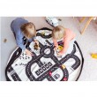 Raširite ovu vreću na podu i odjednom ćete dobiti cestu za utrku autićima! Vreća je oslikana na način da potiče maštovitu igru autićima i na sebi nosi cestu, benzinsku stanicu, kružni tok, pa čak i šumu.