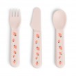 Pribor je dizajniran za lagano držanje i izrađen od izdržljivih, reciklirajućih materijala, što ga čini savršenim za svakodnevnu upotrebu. U nježnoj boji s simpatičnim motivom jagode donosi slatki dodir svakom obroku.