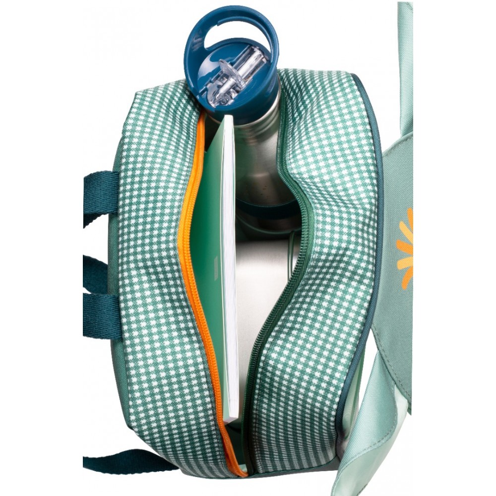 Lagane, podesive naramenice i kompaktan dizajn omogućuju udobno nošenje i sigurno smještanje dječjih stvari, dok unutarnji pretinac pomaže u organizaciji.