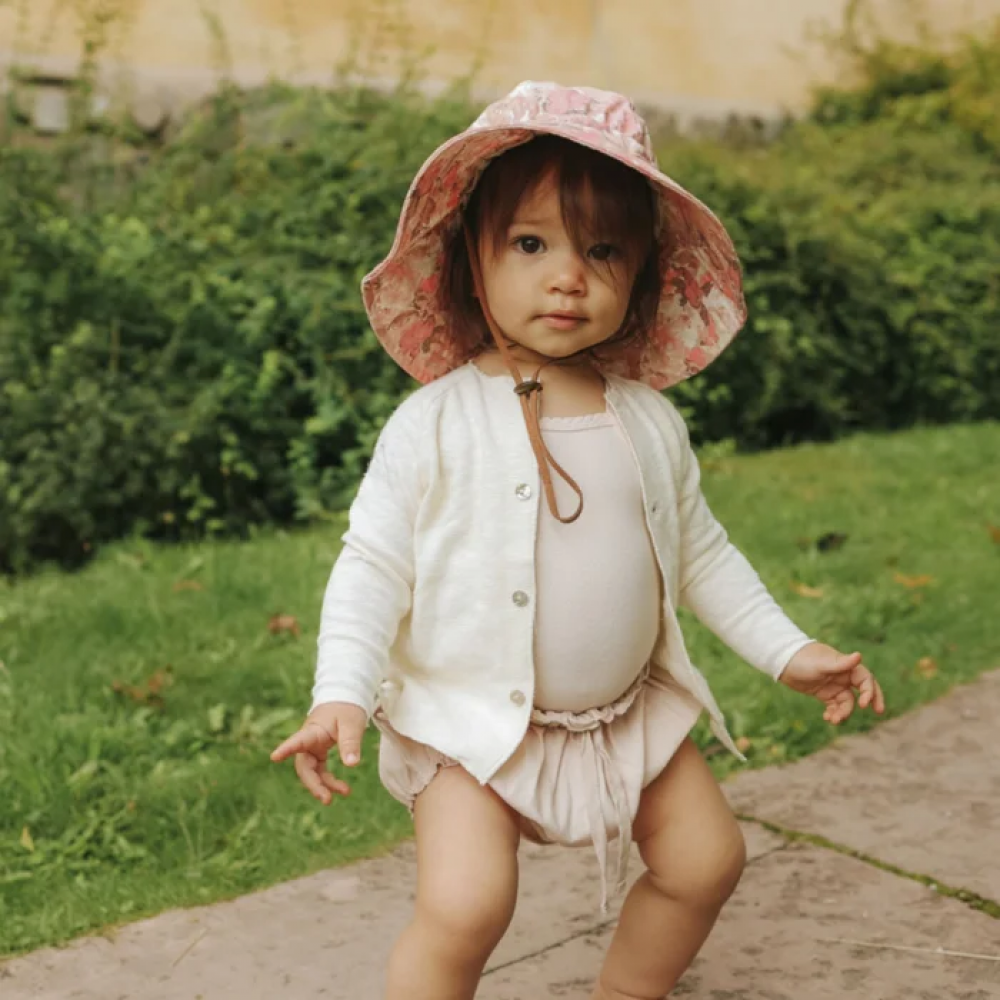 Šeširić s UV zaštitom River Rose brenda Elodie savršen je za zaštitu djece tijekom sunčanih dana. Prekrasan cvjetni uzorak u ružičastim tonovima daje nježan i moderan izgled, dok široki obod učinkovito štiti lice, uši i vrat od sunca.