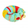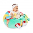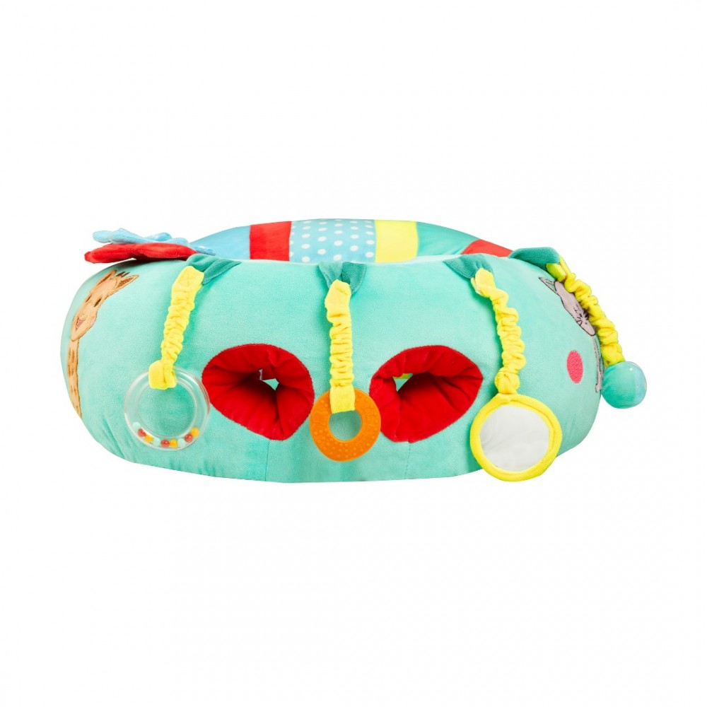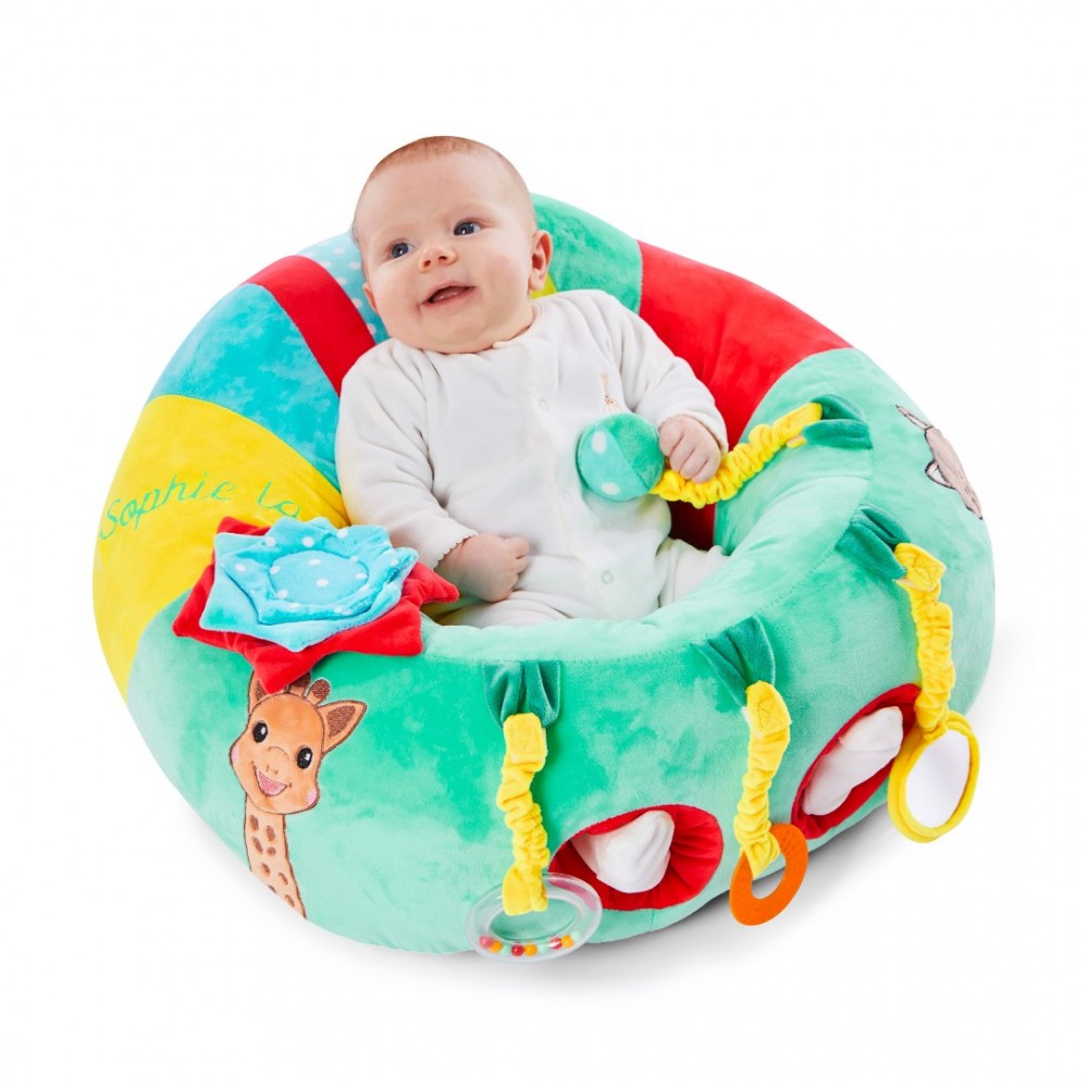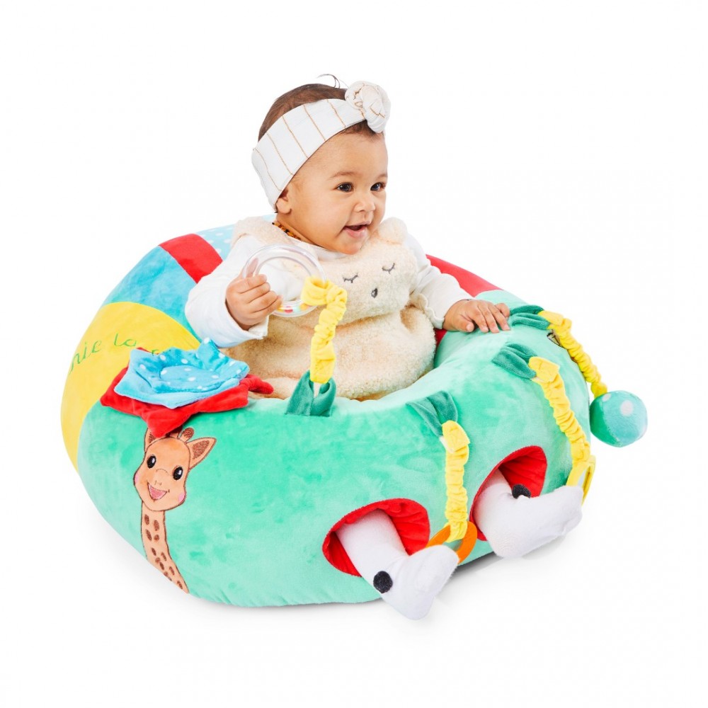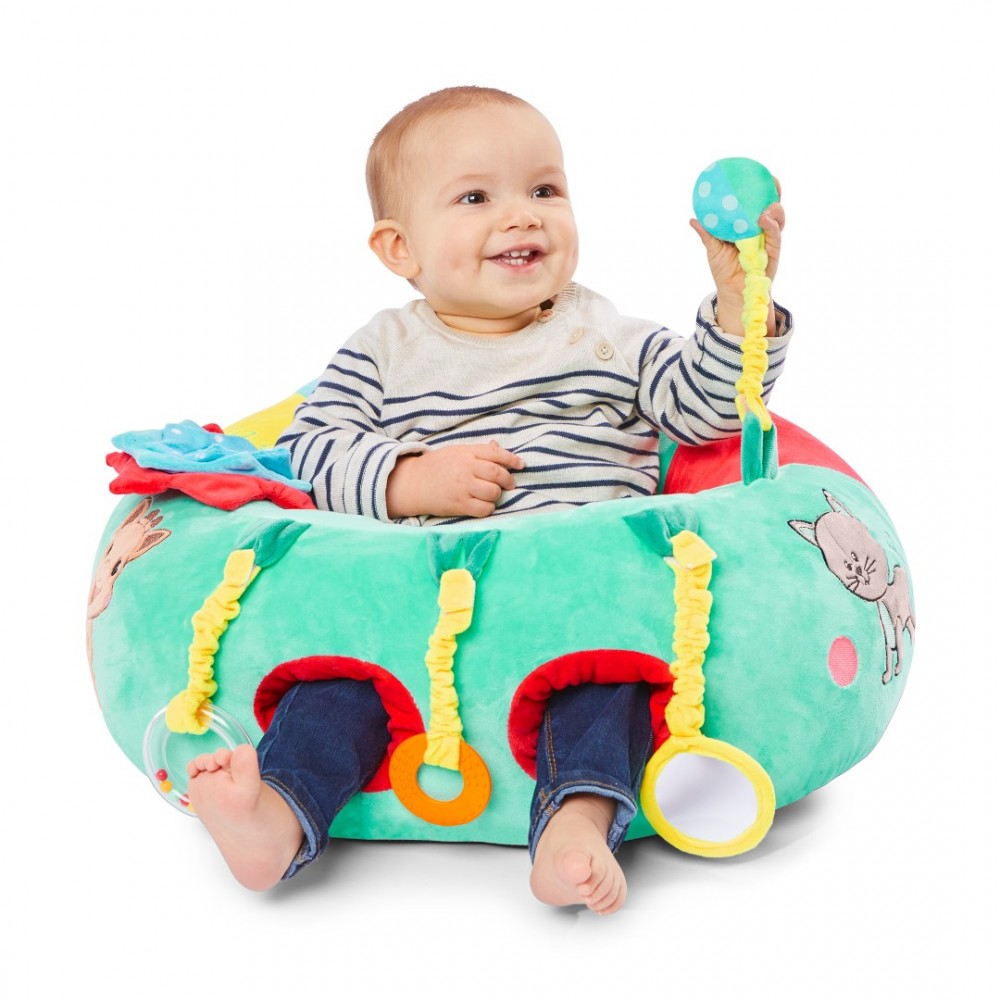 Ovdje ćete pronaći zvečke koje će stimulirati osjetilo sluha, prsten koji je namijenjen za ublažavanje bolnih zubića, ogledalo te različite materijale za razvijanje osjetila dodira. Beba je potpuno sigurna u sjedećem položaju unutar ove fotelje koja ima i dva utora za nogice koje će veselo raditi. Osim što će vašoj bebi biti jako udobno u ovoj plišanoj fotelji, bit će joj i zabavno.